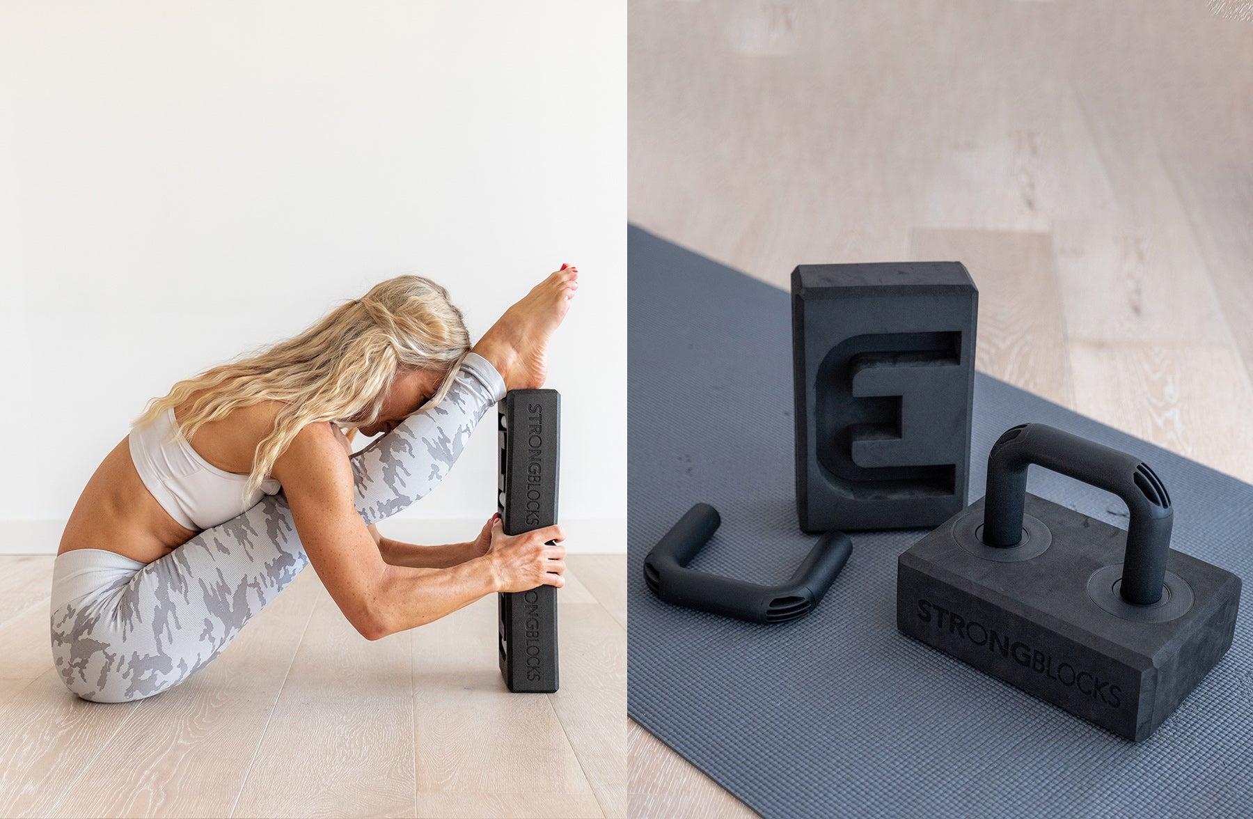 Get strong and stretchy anywhere. Assembled as parallettes and stored as stretching bocks. Lightweight, completely portable and easy to store.