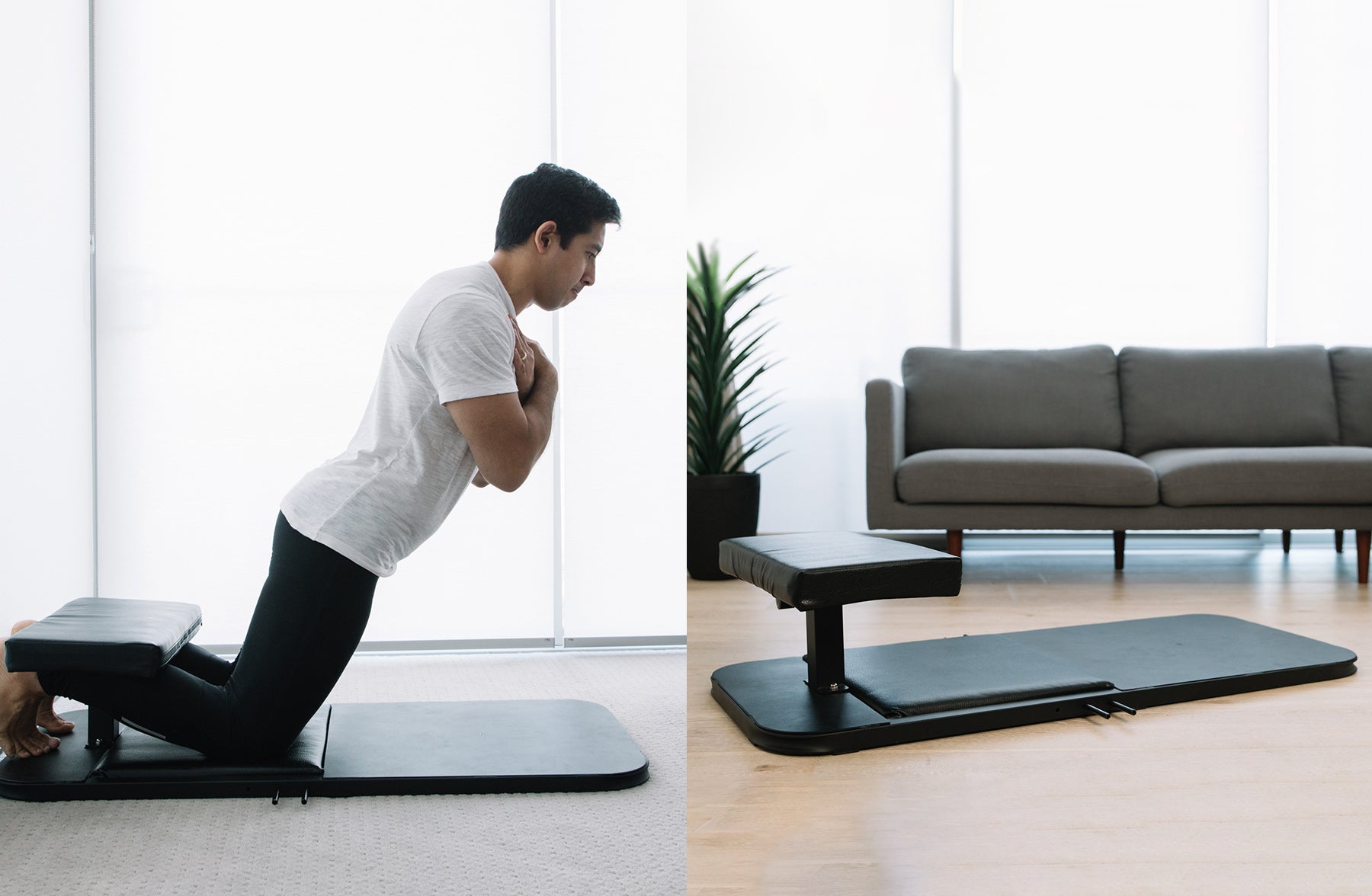Train your hamstrings with the hip hinges and the Nordic curl. The Nordic curl is the gold standard for hamstring strength and hamstring injury prevention. Extra soft padding on your knees and ankles and no partner required.