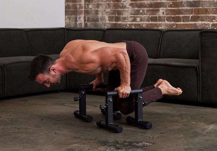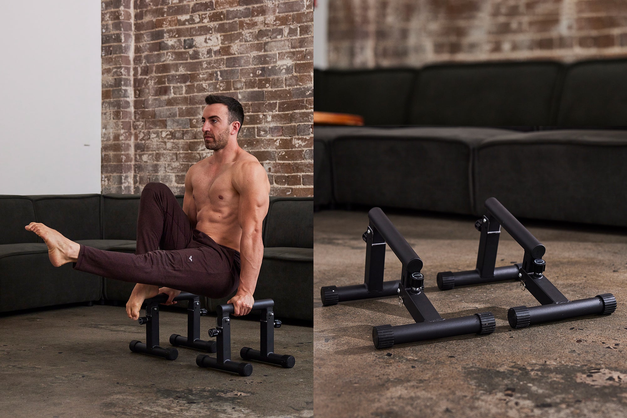 Our modular parallettes with three different setup options: high (30cm), low (14cm) and angled (18°). Birch plywood handles making your grip more comfortable.